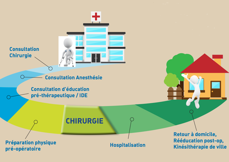 Le soir ou lendemain de l'intervention, vous serez levé. Les sondes et drains seront progressivement enlevés dans les jours suivant. La durée d'hospitalisation varie de 3 à 8 jours après l'intervention. Vous reprendrez l'alimentation progressivement, en général le lendemain, en commençant d'abord par la boisson puis progressivement les aliments solides. Les pansements sont surveillés régulièrement. La reprise du transit intestinal marqué par l'émission de gaz est très importante et signe un retour vers la fonction normale.