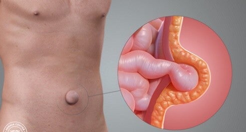 Elle se manifeste par une saillie ou une bosse au niveau de la cicatrice, souvent visible ou accentuée lors de l’effort ou de la toux.