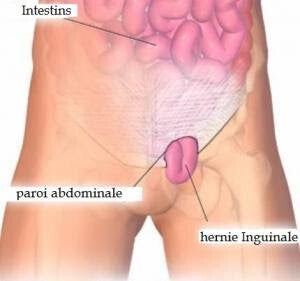 Une hernie inguinale correspond à la protrusion (ou sortie) d’un organe intra-abdominal, le plus souvent une portion de l’intestin grêle ou du tissu graisseux, à travers un point de faiblesse de la paroi abdominale au niveau de l’aine (région inguinale)